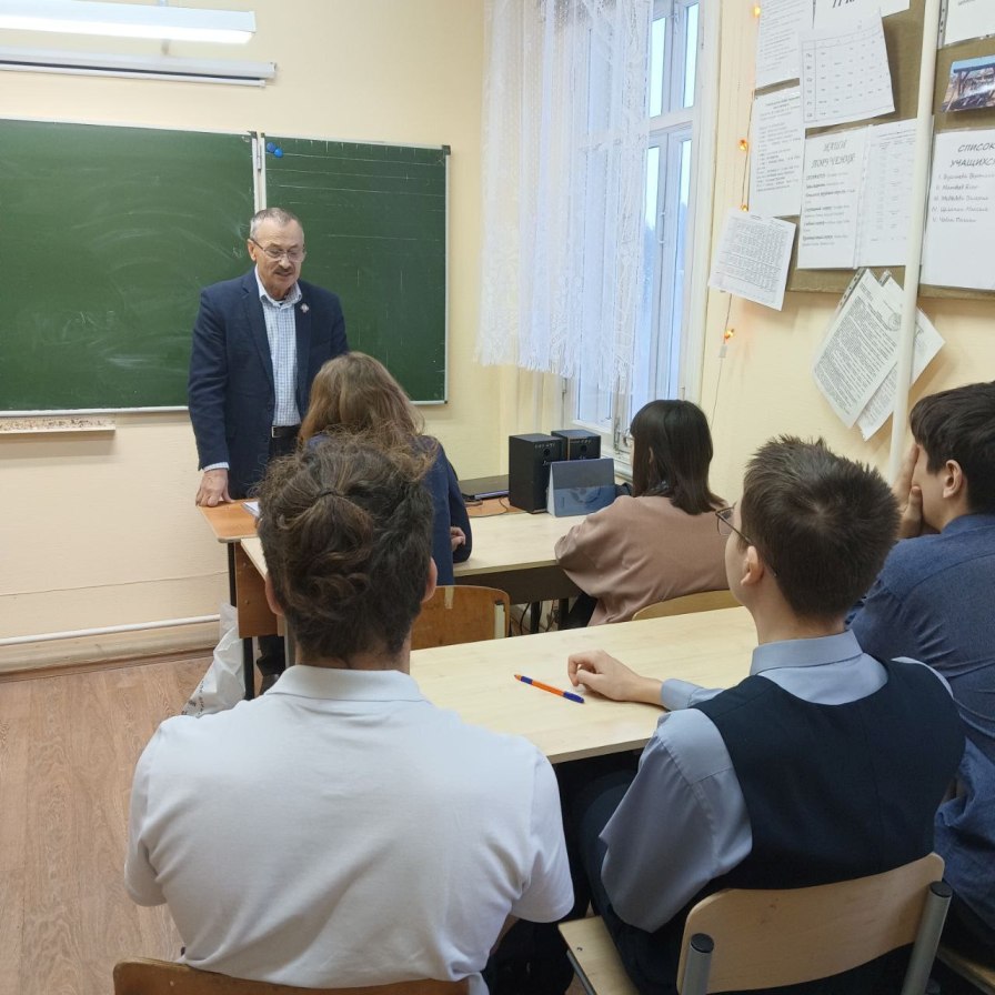 В рамках профориентационной работы в гимназии состоялась встреча старшеклассников с доцентом кафедры социальной и педагогической психологии, факультета психологии ФГАОУ ВО "Государственного университета просвещения" кандидатом психологических наук Киящук Тарасом Васильевичем.